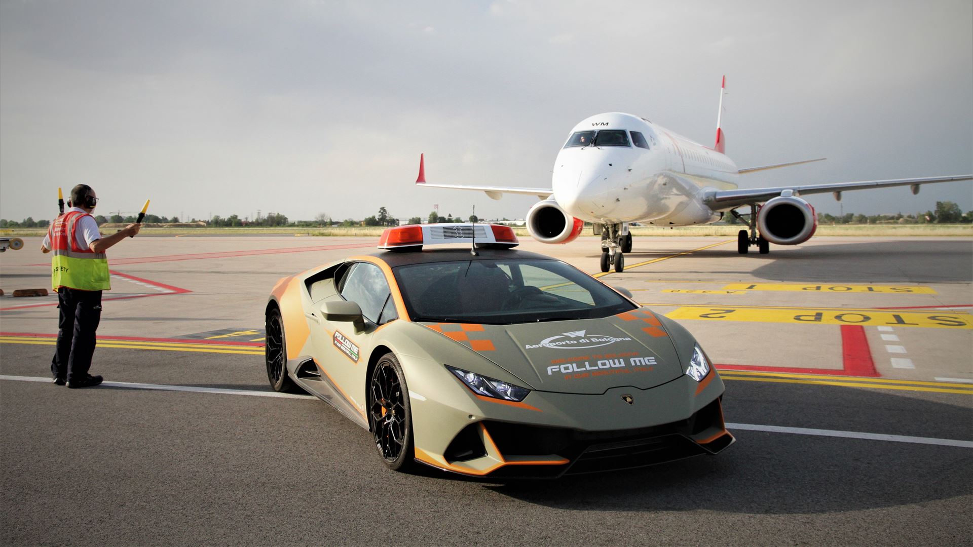 A new Lamborghini Huracán EVO follow−me car for Bologna Airport