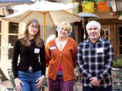 CUTLINE: Guinivere Mayse and Hannah Augustyniak, two undergraduate students studying history at New Mexico State University, received awards from the Doña Ana County Historical Society at its recent annual banquet. From left: Hannah Augustyniak, Guinivere Mayse and Jerry Wallace, history assistant professor and director of the public history program at NMSU. (NMSU photo by Sarah Kimmerly)