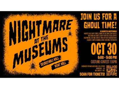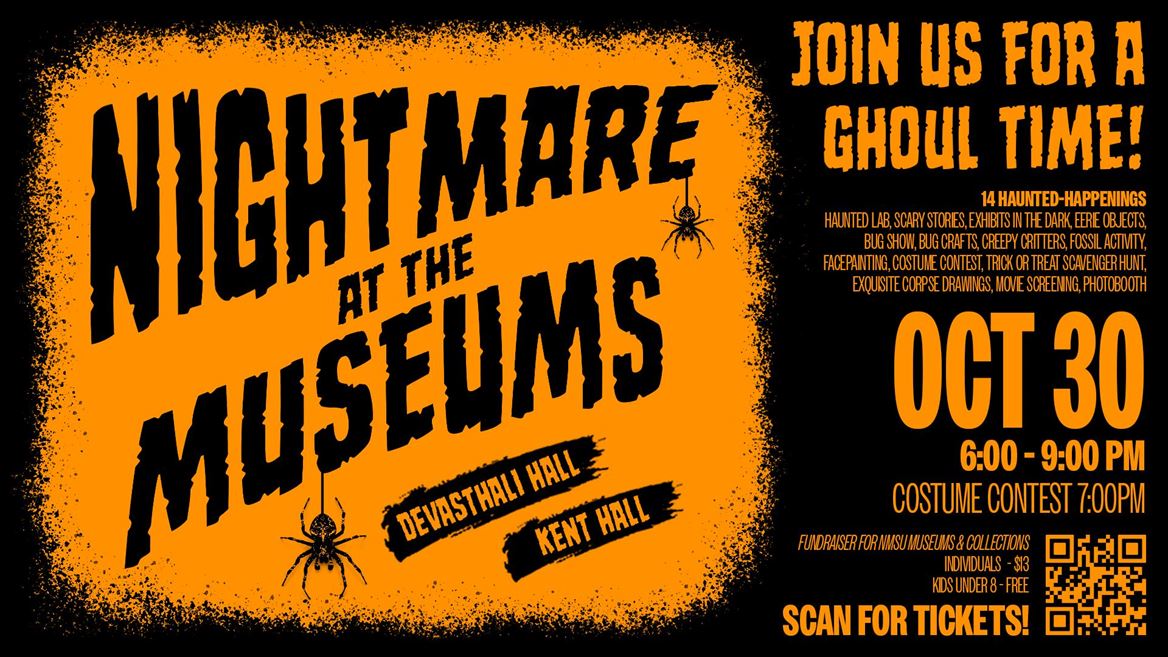 The New Mexico State University museums and collections are joining in on the Halloween spirit with a “Nightmare at the Museums” fundraising event from 6 to 9 p.m. Thursday, Oct. 30 at Kent Hall and Devasthali Hall. From arts and crafts to haunted tours, enjoy Halloween-themed tricks and treats for the whole family.