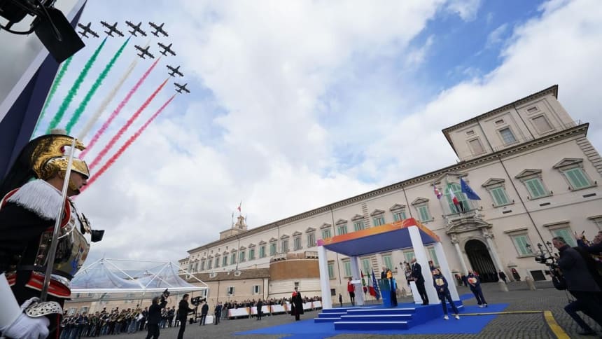 The ceremony, which was also attended by Milano Cortina 2026 President and IOC Member Giovanni Malagò and Comitato Olimpico Nazionale Italiano (CONI) President Luciano Buonfiglio, ended with a spectacular flypast by the Frecce Tricolori aerobatic team.